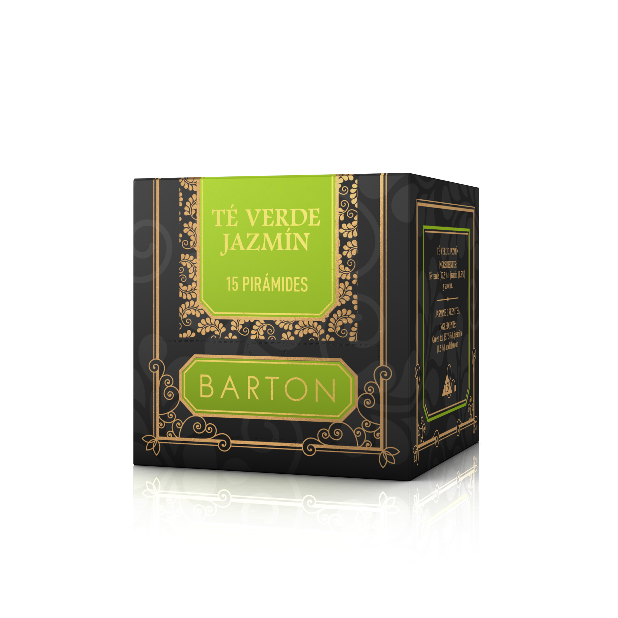 Los amantes de los sabores suaves, florales y muy refrescantes, encontrarán en el Té verde Jazmín aromatizado de Barton su infusión de cabecera. Contiene 15 bolsitas de hojas enrolladas con flores. El té verde se obtiene de las mismas hojas que el té negro pero es elaborado de una forma diferente, evitando la fermentación. Muy apreciado por sus propiedades terapeúticas, sus hojas dan una infusión limpia y de gusto delicado.